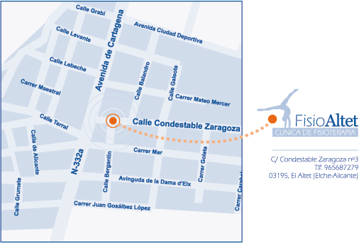 Nos puedes encontrar en el centro del Altet, en la calle Condestable Zaragoza 3. Aquí podrás disfrutar de todos nuestros servicios de Fisioterapia:
